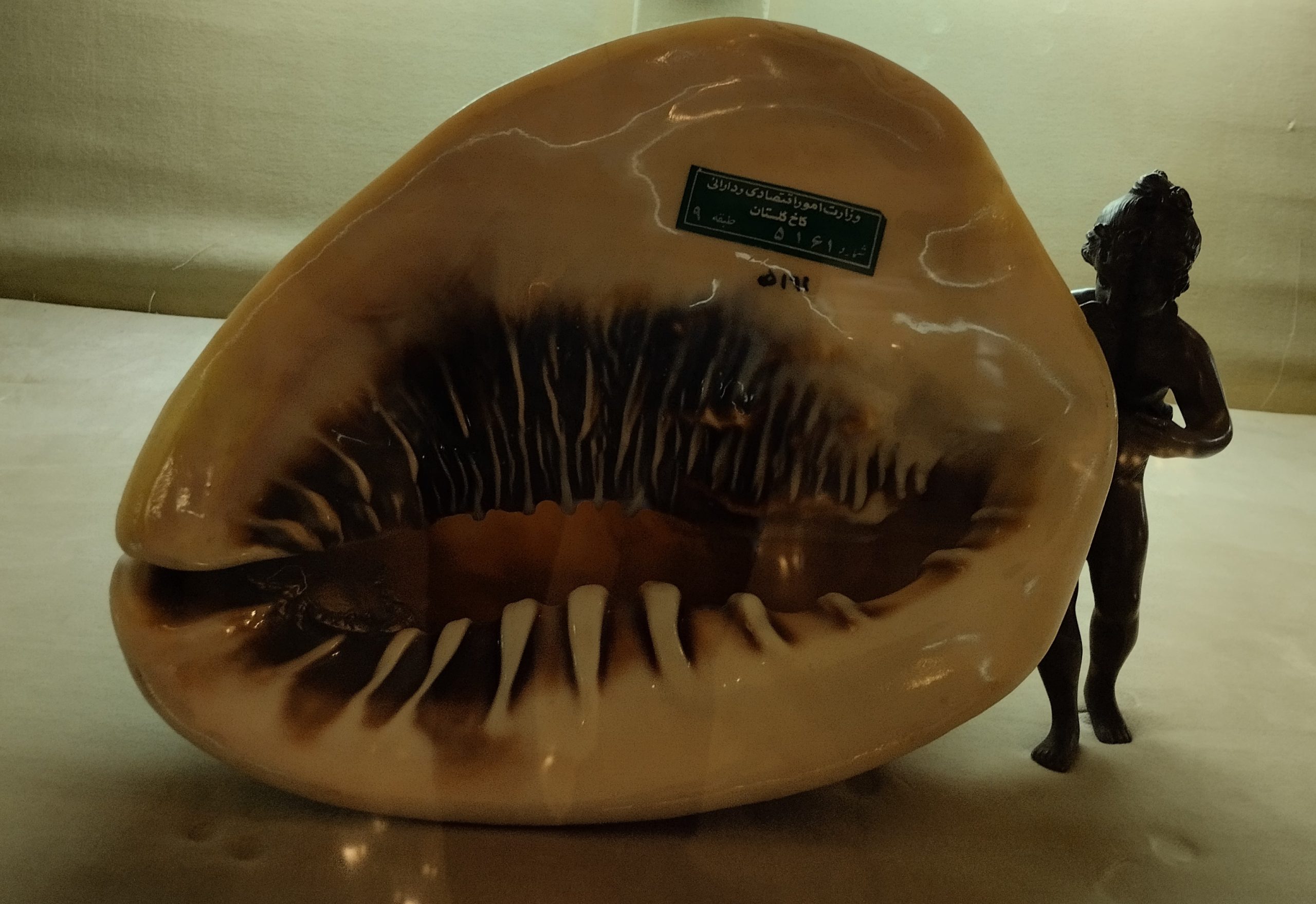 این اثر مربوط به یک صدف دریایی بزرگ (conch shell) است که در موزه کاخ گلستان تهران نگهداری می شود. چنین صدف هایی در دوران قاجار به ویژه در بار فتحعلی شاه و ناصرالدین شاه قاجار به عنوان اشیای تزئینی و کلکسیونی مورد توجه بودند.